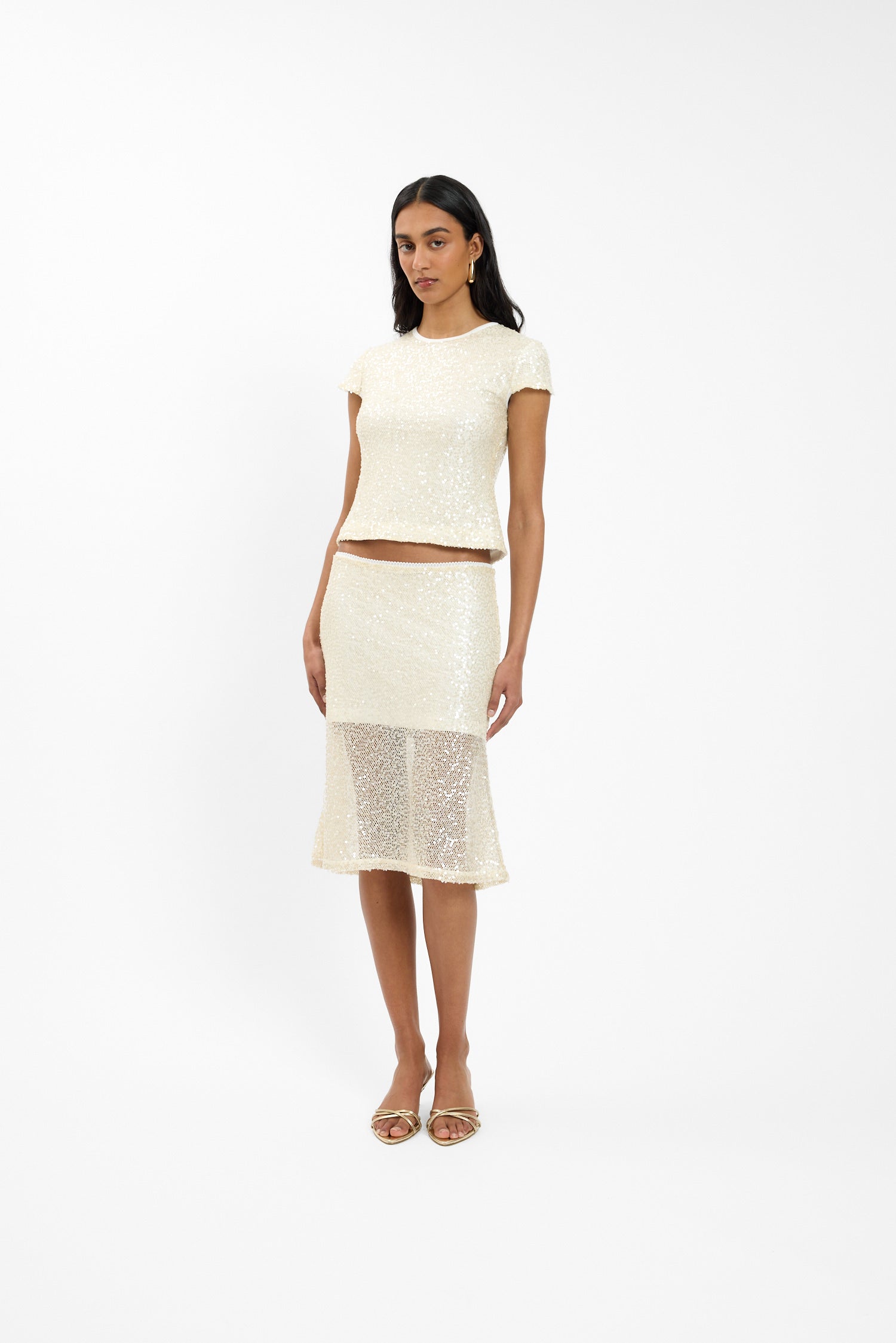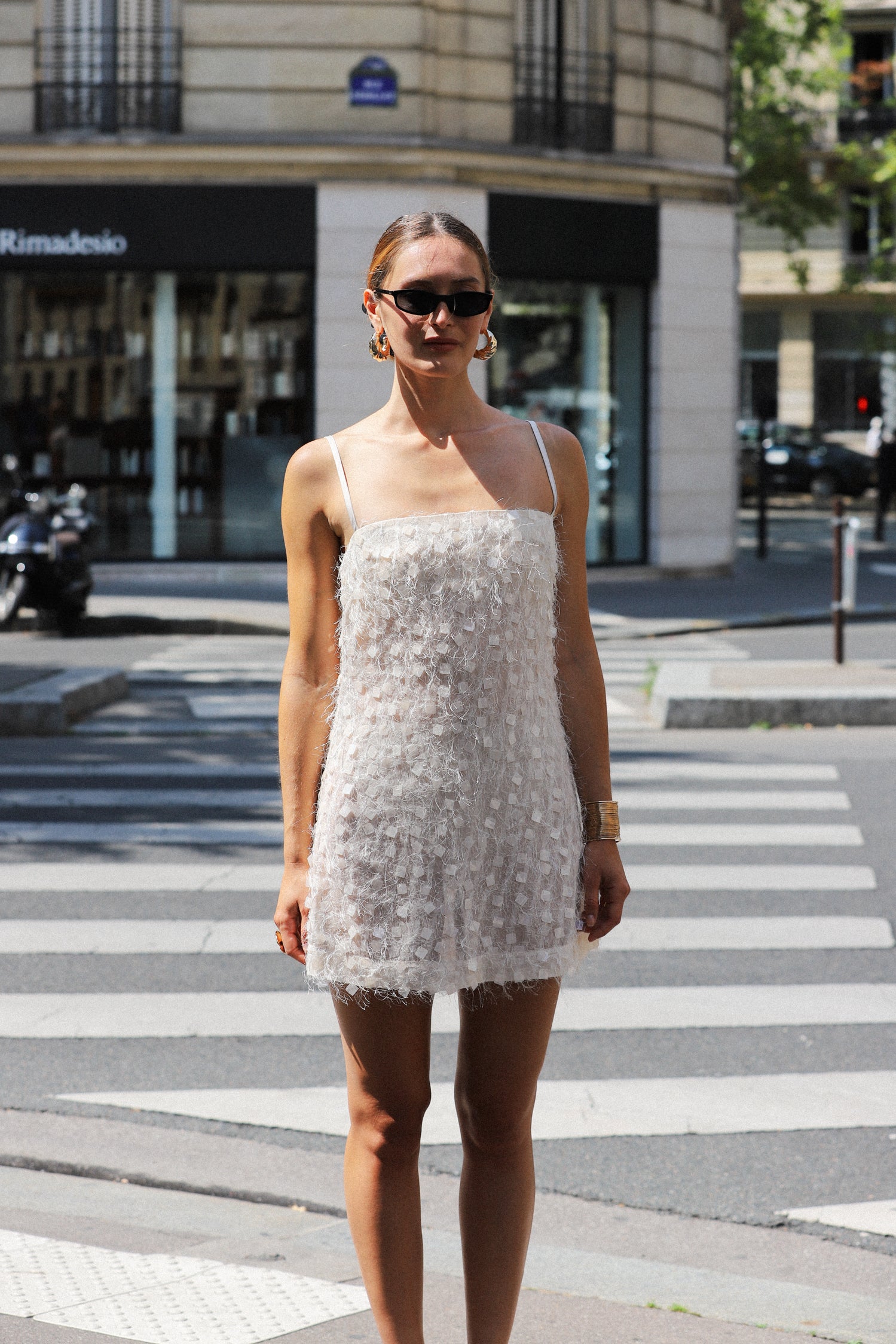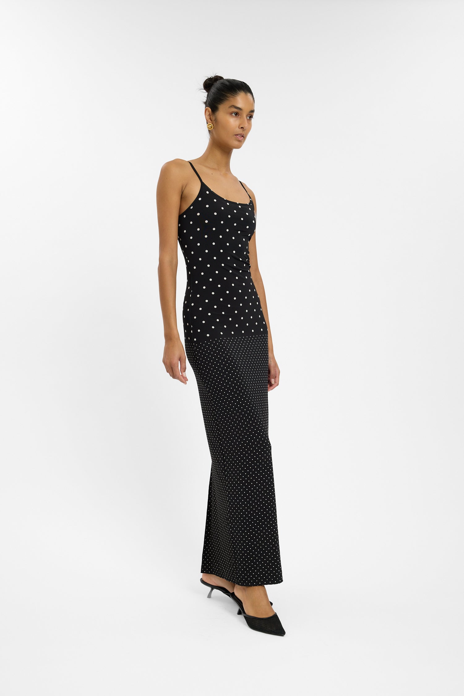 Asymmetrical Frill Dress in Ivory Polka Dots